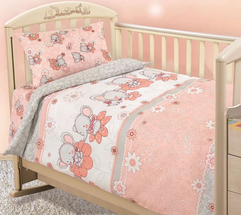 IV Elephant Crib Baby Bedding set: duvet cover bedsheet pillowcase100% cotton calico Soft Baby Cove