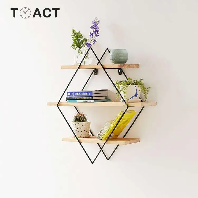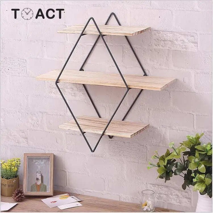BEST QUALITY Nordic living room bedroom Metal Wall Shelf racks wrought iron wall hanging wooden wall storage rac