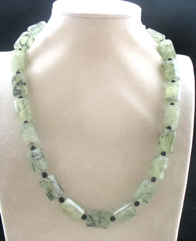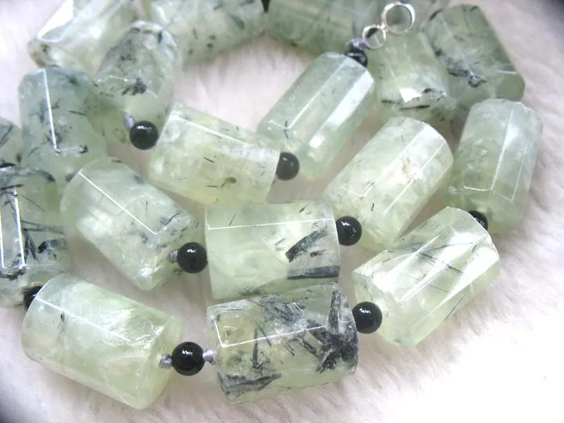 BEST QUALITY GREEN PREHNITE pillar faceted necklace 21inch wholesale nature beads FPPJ