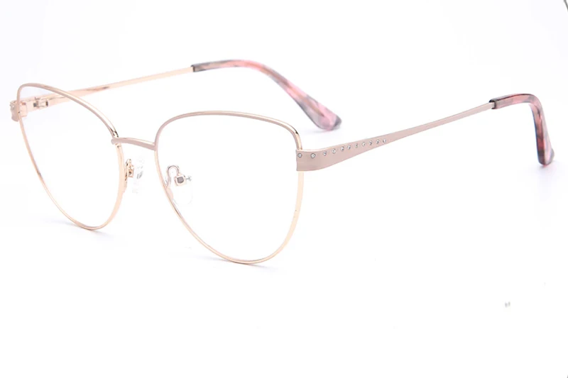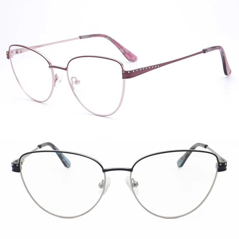 Classic designer metal glasses frame acrylic diamonds decoration temple cateye shape vintage prescr