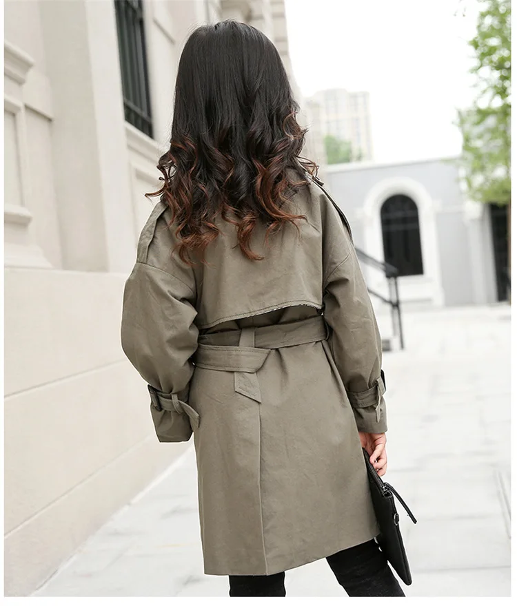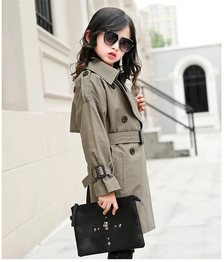 HOT Sale New autumn England college style long section solid color classic double breasted windbreak jacket