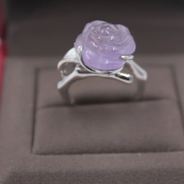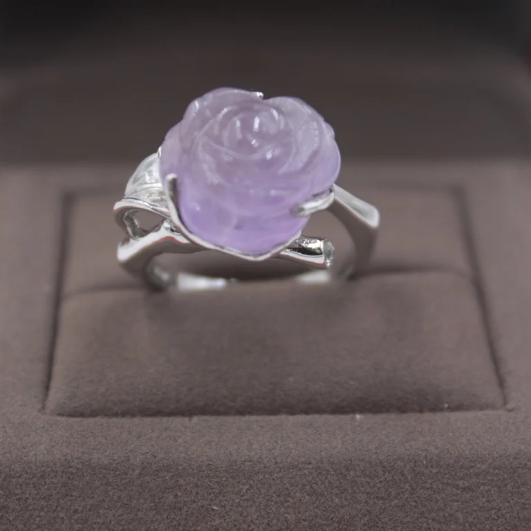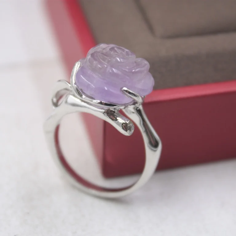 Hot Sale Fine S925 Silver&Natural Purple Crystal Ring 14mmW For Women Elegant Lace Ring Size US 5-9